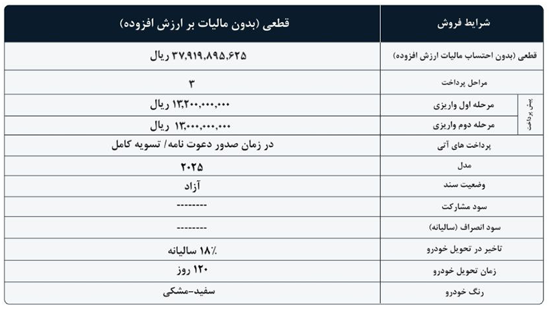 - مرحله اول: پیشپرداخت ۱۳,۲۰۰,۰۰۰,۰۰۰ ریال