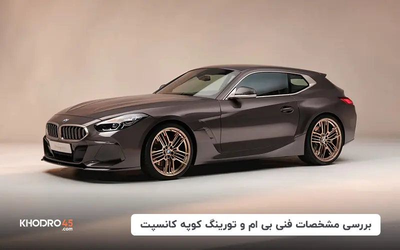 بی ام و تورینگ کوپه کانسپت نسخه جدیدی از بی ام و Z3 M محسوب میشود که در بین طرفداران بیمر به کفش دلقک معروف است. دلیل این نامگذاری هم شباهت Z3 به کفشهای کشیده دلقکهاست. البته بهتر است که تورینگ کوپه را به عنوان یک خودرو شوتینگ بریک معرفی کنیم. این خودرو بر اساس نسل G ساخته شده و نسخه سقف فلزی از نسل G29 بی ام و Z4 رودستر به حساب میآید.