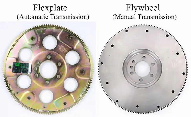 فلایویل در گیربکس دستی بهصورت همزمان در نقش دنده استارت و بخشی از سیستم اصطکاکی مکانیزم کلاچ ایفای نقش میکند. فلکس پلیت اما ساختاری بسیار سبکتر دارد و بهعنوان دنده استارت و صفحه متصلکننده توربین (مبدل گشتاور) به گیربکس اتوماتیک ایفای نقش میکند.