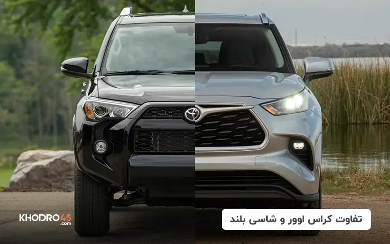 مهمترین اختلافی که بین دو کلاس خودرویی کراس اوور و شاسی بلند دیده میشود و اصلیترین فاکتور تمایز این دو رده از خودروها به شمار میآید، در نوع شاسی آنهاست. خودروهای SUV دارای شاسی جدا از بدنهاند که خواص ویژهای به چگونگی حرکت آنها میدهد و در کنار سواری کمی خشکتر، قابلیتهای بیراههنوردی را بالا میبرد. در مقابل، کراس اوورها شاسی یکپارچه با بدنه دارند و معمولا از پلتفرم مشترکی با خودروهای سدان بهره میبرند که کیفیت رانندگی را نزدیک به سدانها و هاچکها میکند. البته که قابلیتهای خارج جاده آنها نیز بسیار کمتر از یک شاسی بلند واقعی خواهد بود.