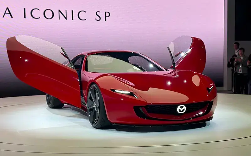 کانسپت مزدا آیکانیک SP، خودرو اسپرت کامپکت و جمع و جوری است که با الهام از RX-7 افسانهای طراحی شده است. این خودرو با رنگ قرمز باشکوهی در غرفه مزدا توجه همه را به سوی خود جلب میکرد. در کانسپت آیکونیک SP از پیشرانه برقی شامل دو موتور الکتریکی و یک موتور چرخنده استفاده شده است که میتواند با سوختهای جایگزینی همچون سوخت هیدروژنی کار کند. حداکثر قدرت پیشرانه حدود ۳۶۵ اسب بخار است.