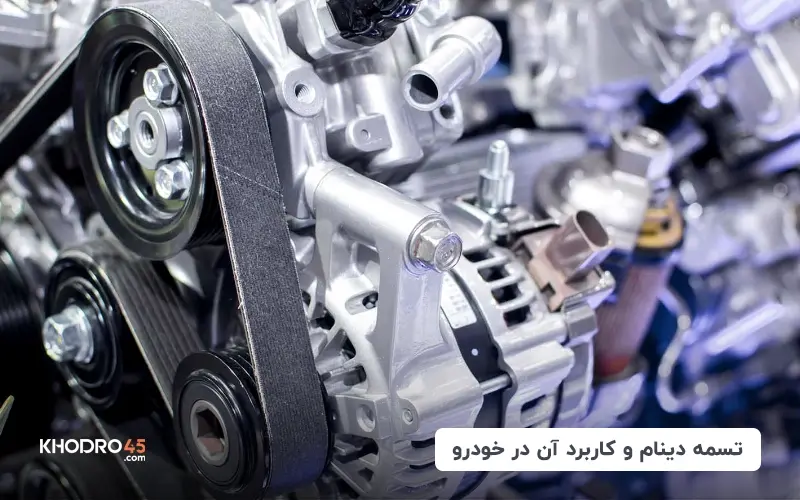 سادهترین توصیف تسمه دینام این است که بگوییم تسمهای که وظیفه راهاندازی دینام موتور خودرو را دارد. برق خودرو توسط دینام (آلترناتور) تامین و در باتری خودرو ذخیره میشود. بنابراین دینام باید انرژی و نیروی لازم برای کارکرد و حرکت خود را از موتور خودرو دریافت کند که این کار توسط تسمه دینام انجام میشود. اما تسمه دینام فقط برای راهاندازی دینام نیست و یک سری ادوات دیگر نیز در این بین از همان تسمه دینام، نیروی لازم برای حرکت خود را دریافت میکنند. از این لوازم و قسمتها میتوان به کمپرسور کولر ماشین، پمپ هیدرولیک، واترپمپ و پروانه خنککننده رادیاتور خودرو نیز نام برد که بسته به نوع طراحی خودرو، تمام این قسمتها یا فقط بعضی از آنها، از تسمه دینام نیرو میگیرند.