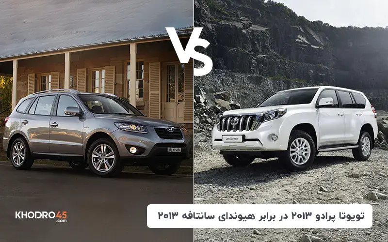 هیوندای سانتافه ۲۰۱۳ و تویوتا پرادو ۲۰۱۳، دو عضو مهم و بازیگر اساسی بازار خودروهای شاسیبلند قدیمی در ایران به شمار میروند. در این میان از آنجا که سانتافه دارای قیمت کمتر و مصرف پایینتری در مقایسه با پرادو است، خودروی مناسبتری برای مصارف شهری به شمار میرود و بازار خرید و فروش آن هم کمابیش رونق دارد.