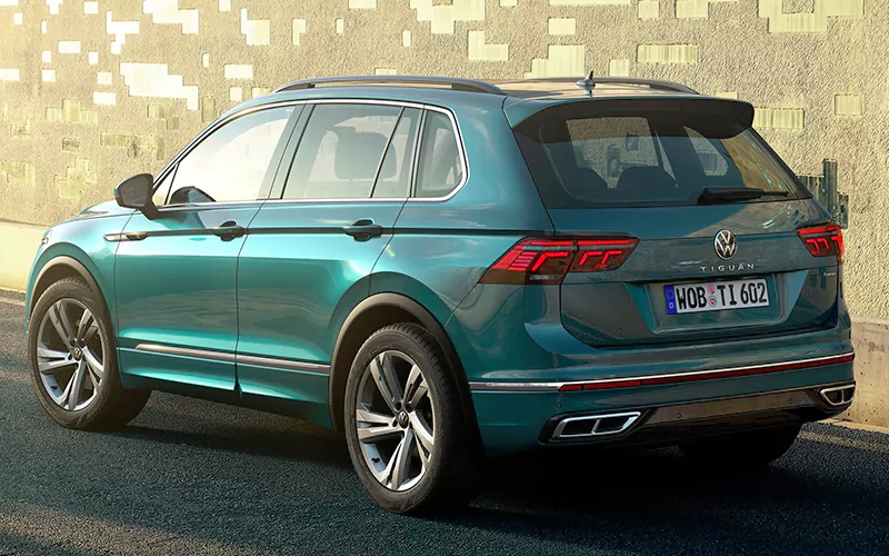 چراغهای عقب هم مثل نمای جلو حالتی شکیل به تیگوان بخشیدهاند و با درب صندوق ترکیب شدهاند. پهنای صندوق عقب بزرگ است و دسترسی راحتتری را به فضای بار فراهم میکند. طراحی سپر عقب کاربردی جذاب دیده میشود و مهشکن و دیفیوزر را در خود جای داده است.