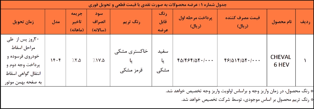 - زمان تحویل خودرو: از اسفند ۱۴۰۴ تا مرداد ۱۴۰۵
